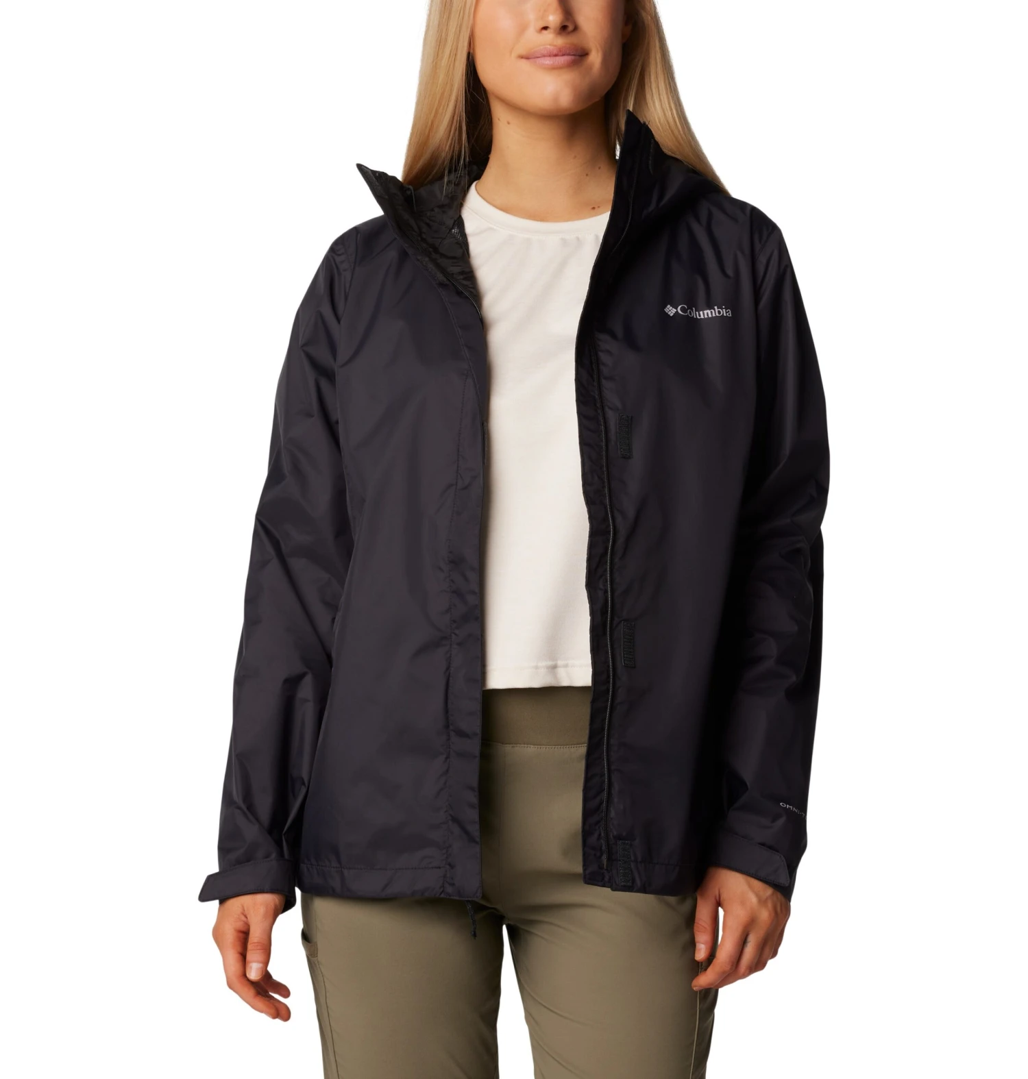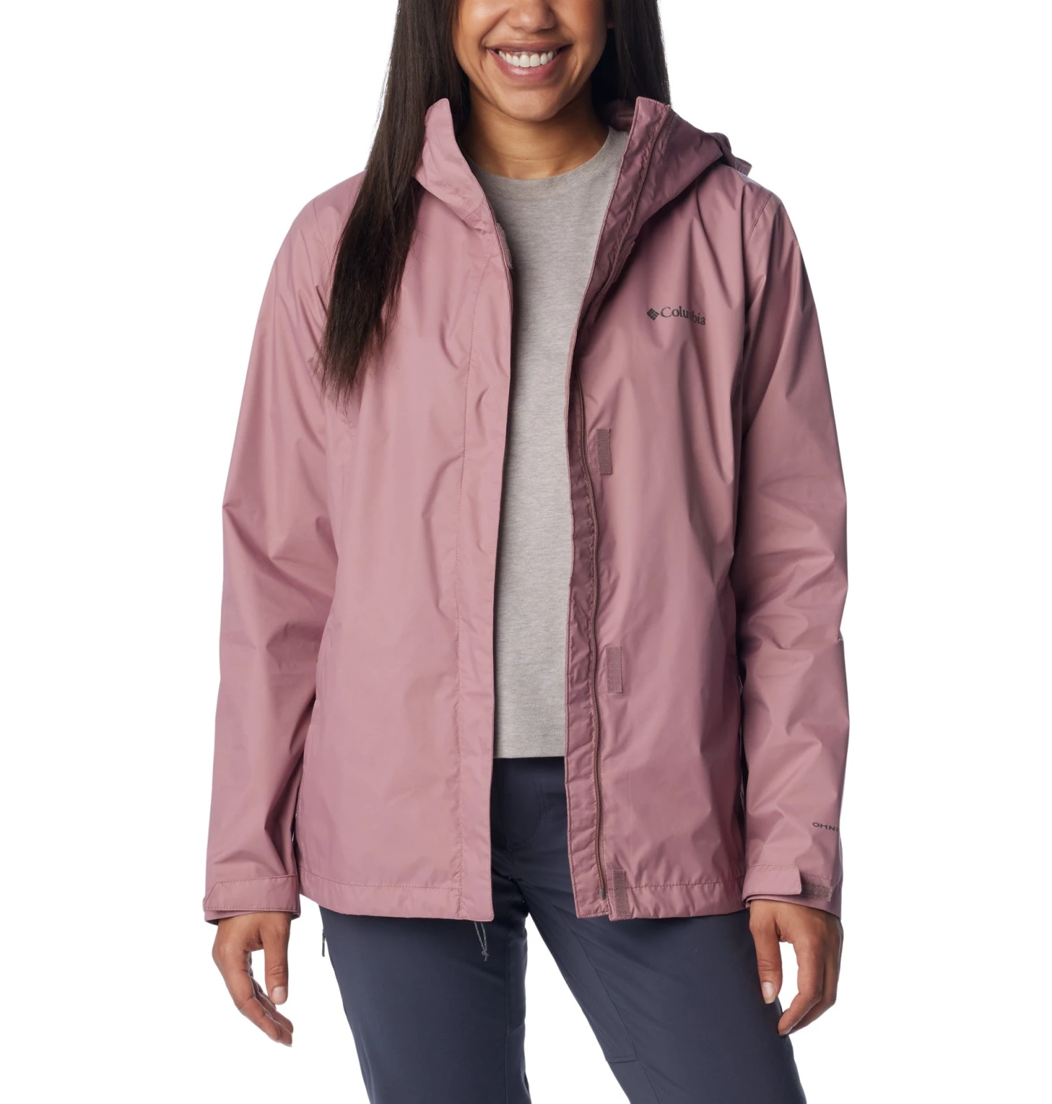 Cette veste imperméable pour femmes de la marque Columbia est fiable vous protègera des intempéries avec style. Légère et respirante, elle est parfaite pour vos aventures en plein air offerte en deux couleurs (noir et mauve).